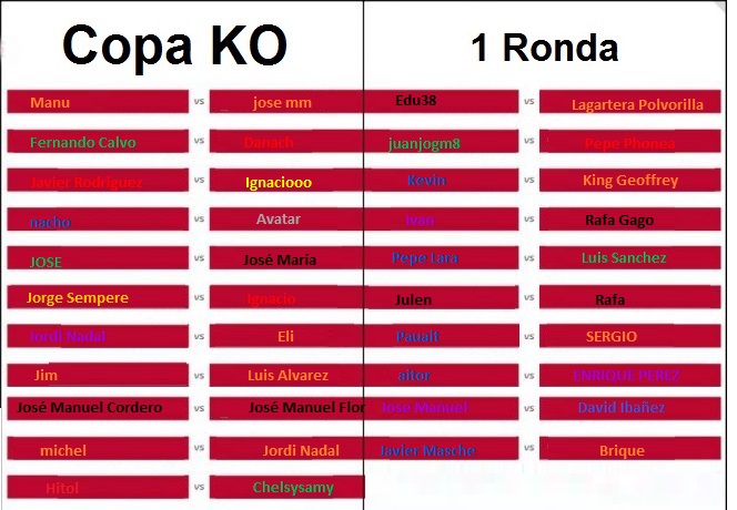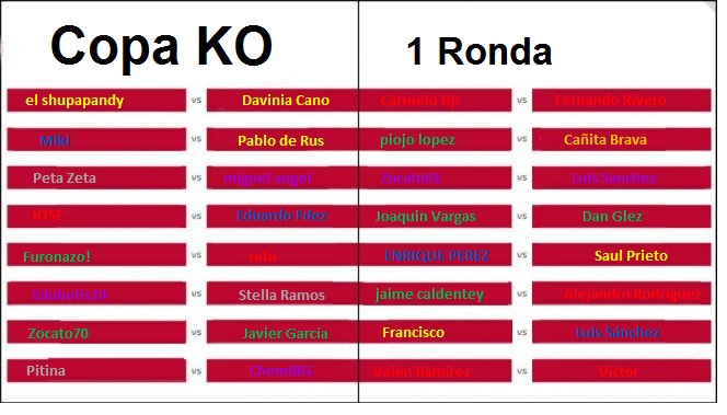 Ya tenemos el sorteo realizado, de la ronda de la 1 ronda de Copa KO, como ya sabéis participan todos los integrantes de las 8 comunidades.
