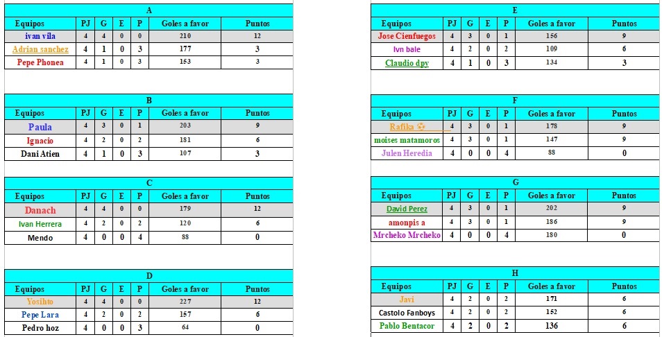 Los equipos marcados en color gris, son los clasificados para la siguiente ronda, el sorteo de Cuartos de final se realizara en breves días.